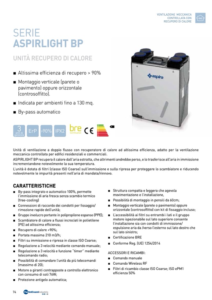 ASPIRLIGHT BP recupera il calore dall'aria estratta, che altrimenti andrebbe perso, e lo trasferisce all’aria in immissione
