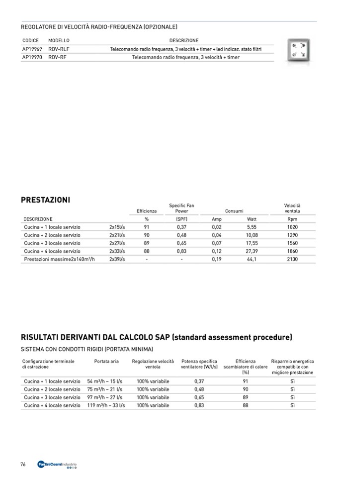 Telecomando radio frequenza, 3 velocità + timer + led indicaz. stato filtri