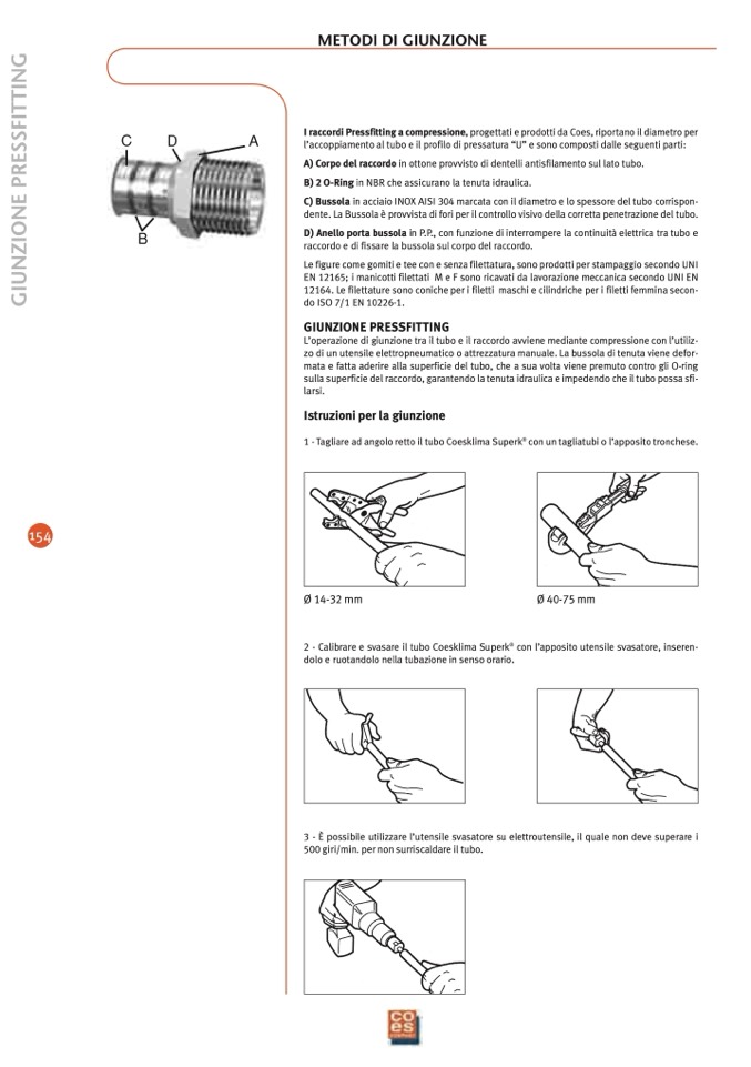 I raccordi Pressfitting a compressione, progettati e prodotti da Coes, riportano il diametro per