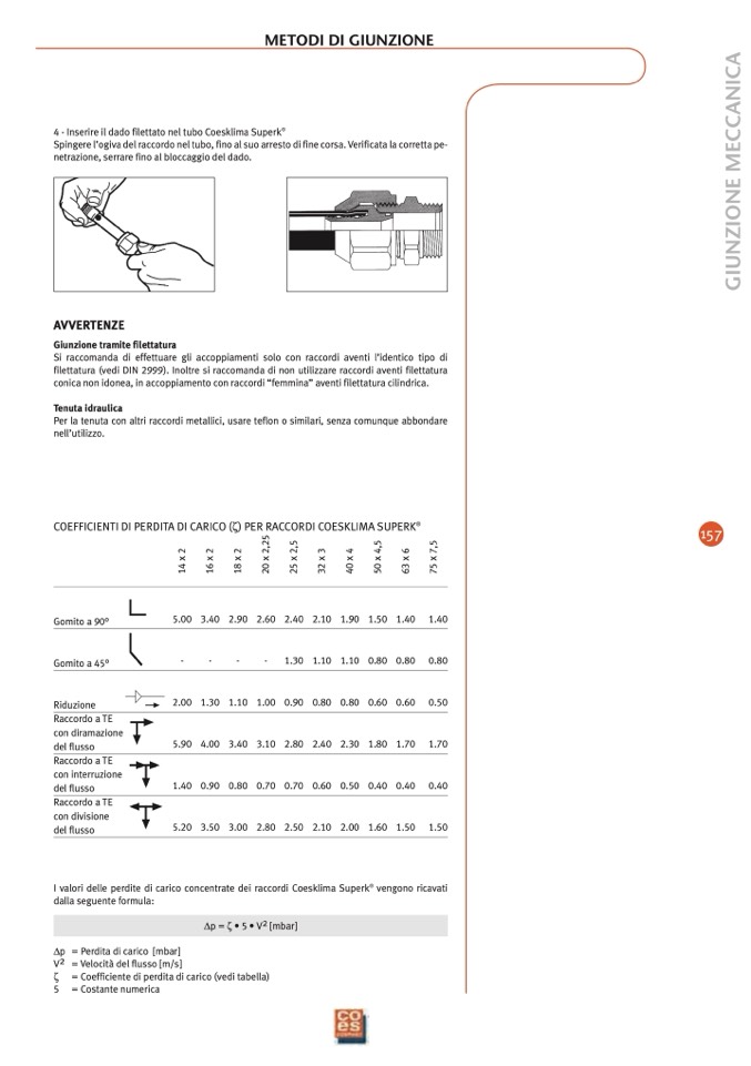 COEFFICIENTI DI PERDITA DI CARICO (ζ) PER RACCORDI COESKLIMA SUPERK