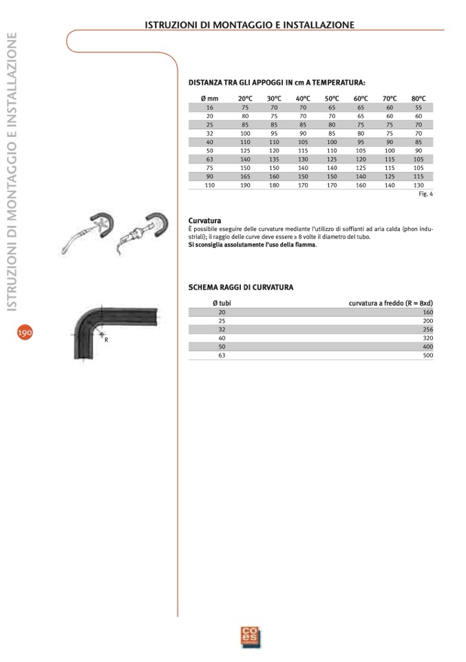 DISTANZA TRA GLI APPOGGI IN cm A TEMPERATURA: