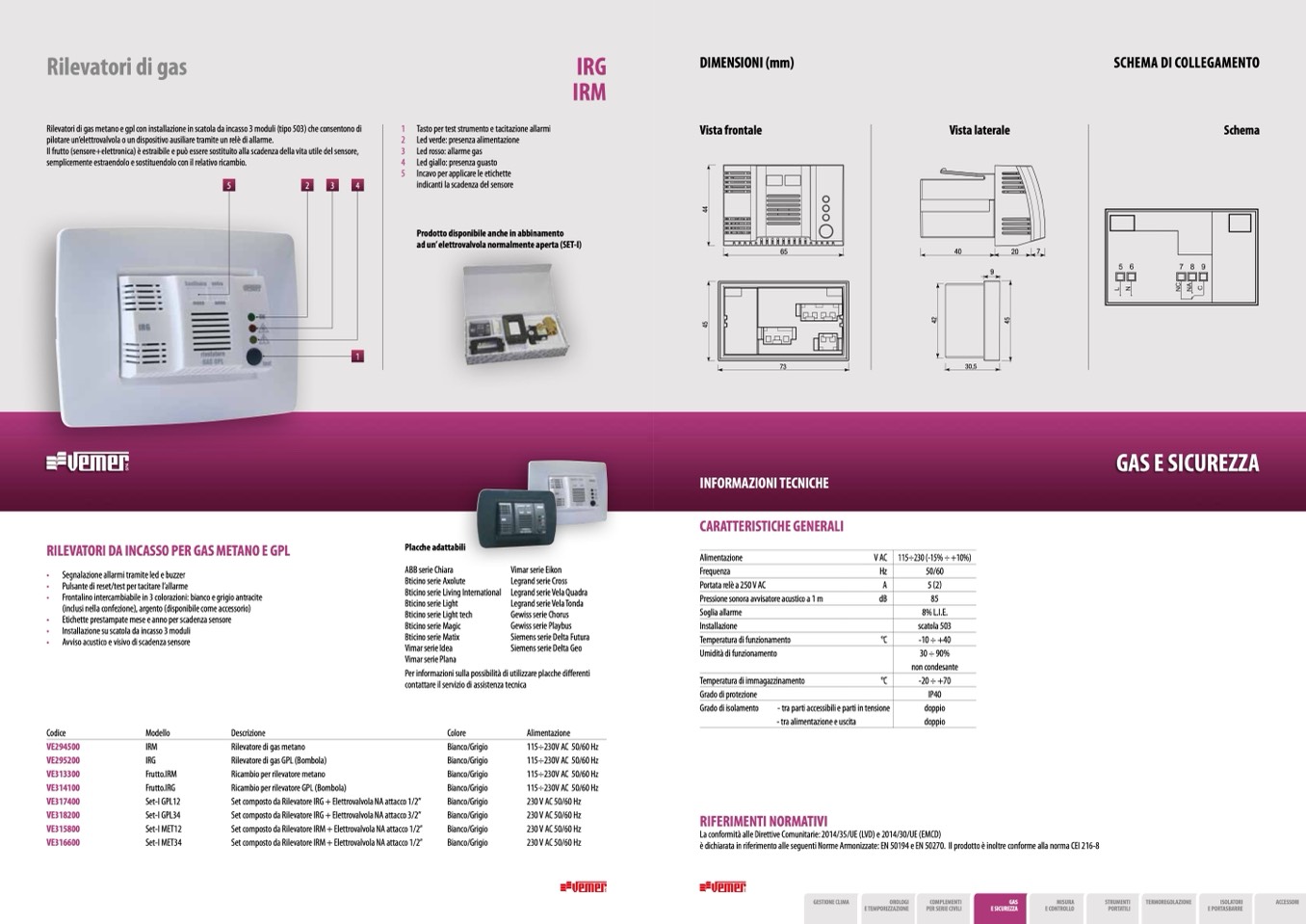 è dichiarata in riferimento alle seguenti Norme Armonizzate: EN 50194 e EN 50270. Il prodotto è inoltre conforme alla norma CEI 216-8