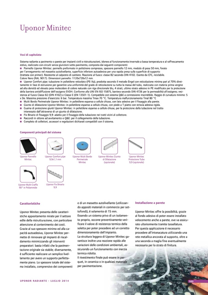 Multi Bordo Perimetrale Uponor Minitec: in polietilene espanso a cellule chiuse, con lato adesivo per il fissaggio alla parete.