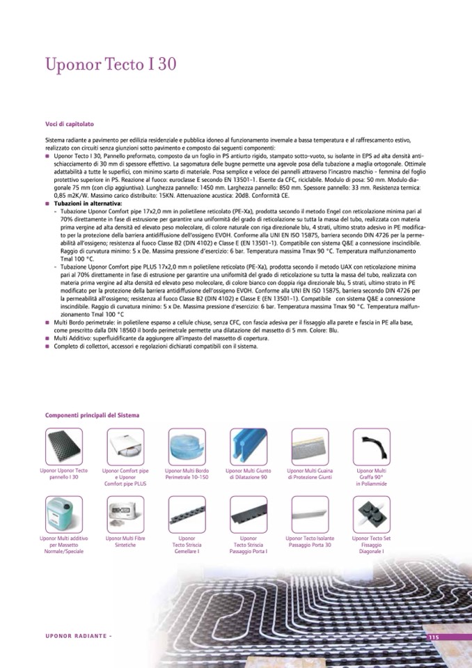 Uponor Tecto I 30, Pannello preformato, composto da un foglio in PS antiurto rigido, stampato sotto-vuoto, su isolante in EPS ad alta densità anti-