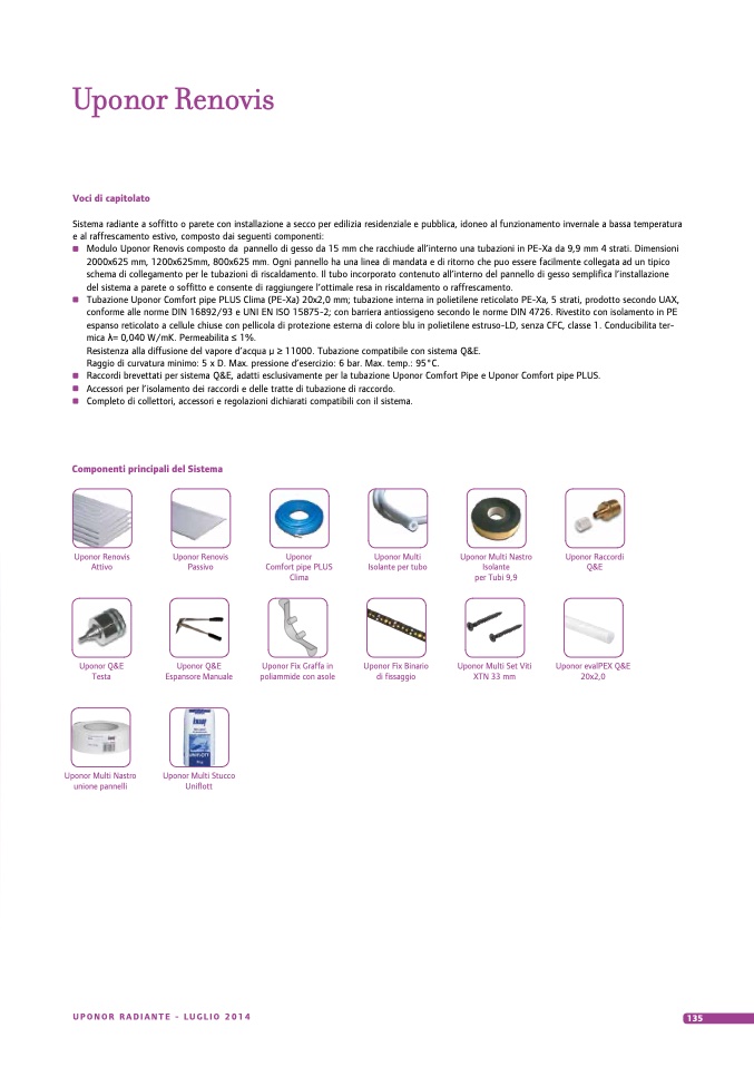 Resistenza alla diffusione del vapore d’acqua μ ≥ 11000. Tubazione compatibile con sistema Q&E.