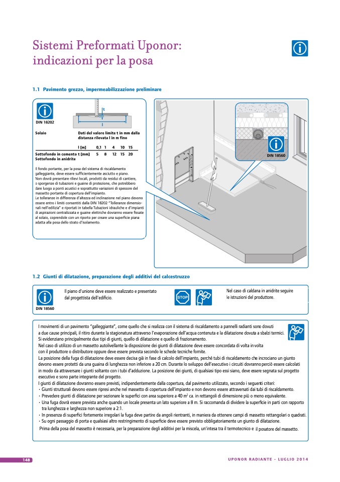 Nel caso di utilizzo di un massetto autolivellante la disposizione dei giunti di dilatazione deve essere concordata di volta in volta