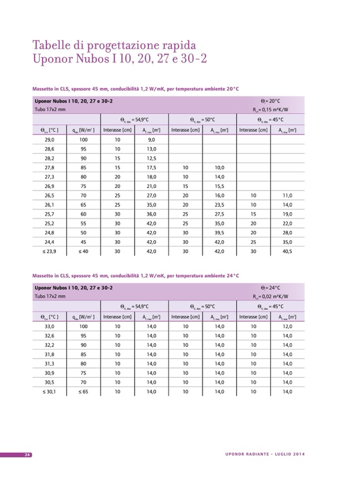 Massetto in CLS, spessore 45 mm, conducibilità 1,2 W/mK, per temperatura ambiente 24°C