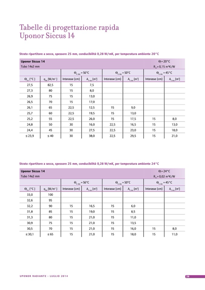 Strato ripartitore a secco, spessore 25 mm, conducibilità 0,28 W/mK, per temperatura ambiente 24°C