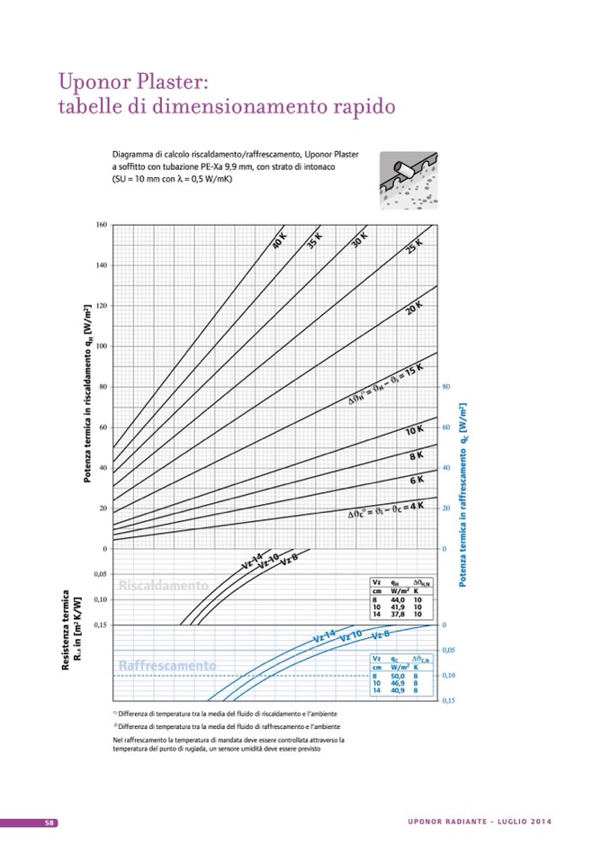 Diagramma di calcolo riscaldamento/raffrescamento, Uponor Plaster