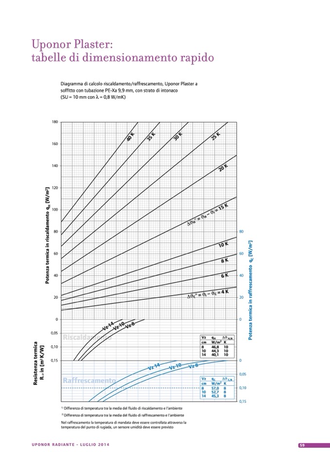 Diagramma di calcolo riscaldamento/raffrescamento, Uponor Plaster a