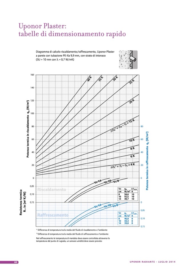 Diagramma di calcolo riscaldamento/raffrescamento, Uponor Plaster