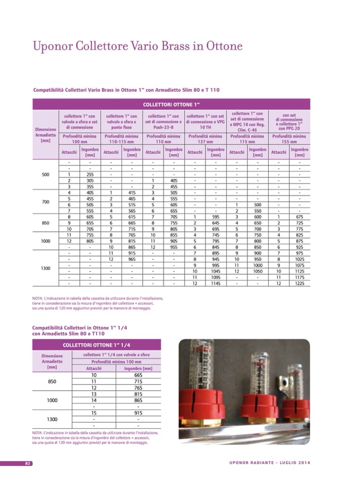 Compatibilità Collettori Vario Brass in Ottone 1” con Armadietto Slim 80 e T 110
