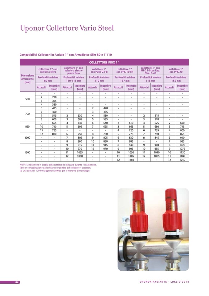 Compatibilità Collettori in Acciaio 1” con Armadietto Slim 80 e T 110