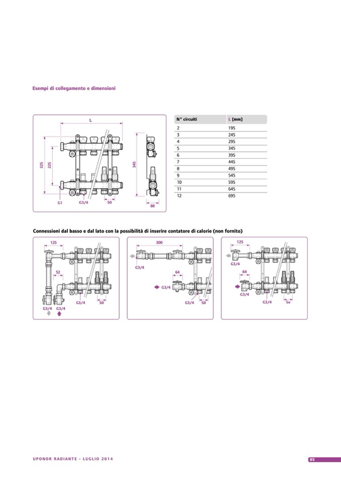 Esempi di collegamento e dimensioni