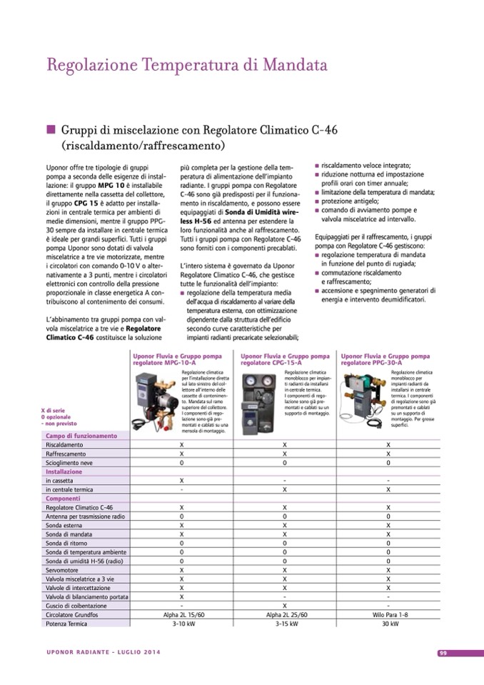 radiante. I gruppi pompa con Regolatore