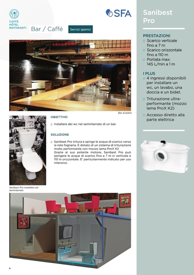 Sanibest Pro tritura e spinge le acque di scarico verso