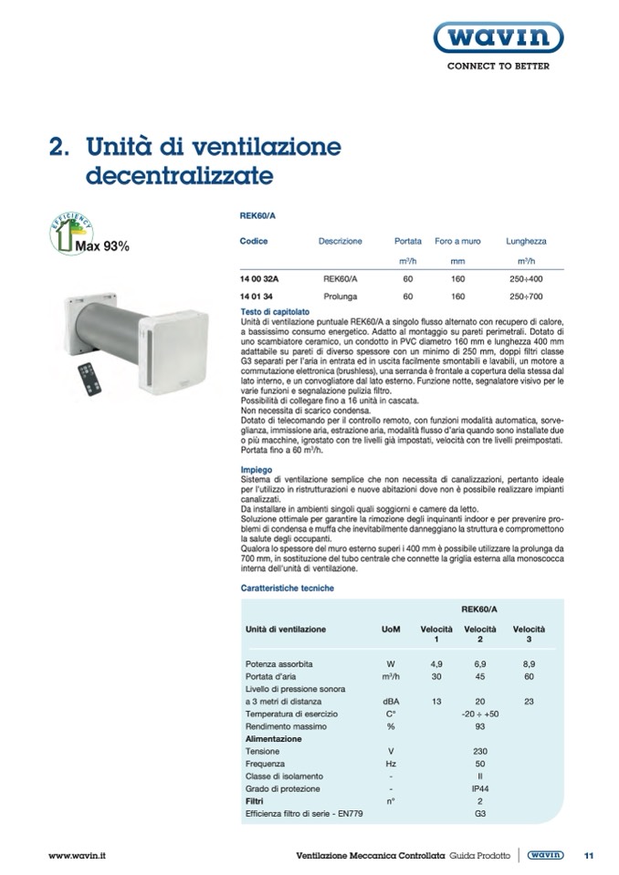 a bassissimo consumo energetico. Adatto al montaggio su pareti perimetrali. Dotato di