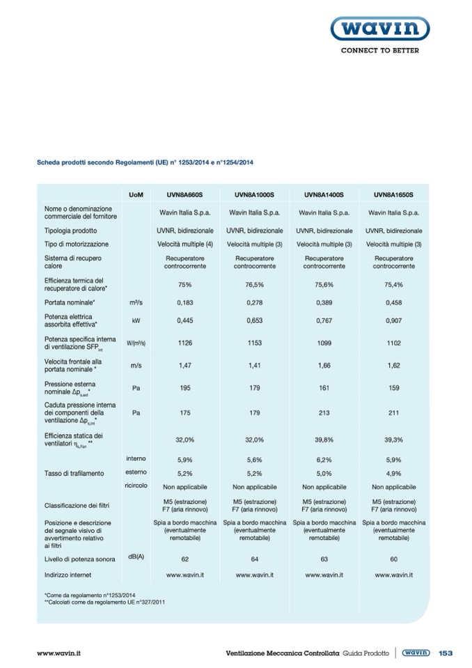 Scheda prodotti secondo Regolamenti (UE) n° 1253/2014 e n°1254/2014
