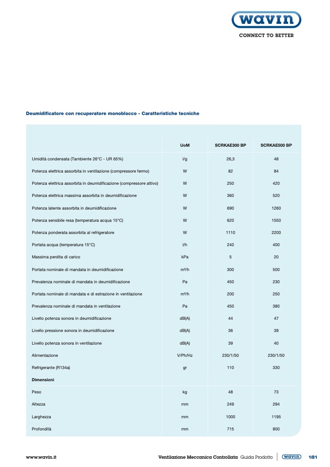 Deumidificatore con recuperatore monoblocco - Caratteristiche tecniche