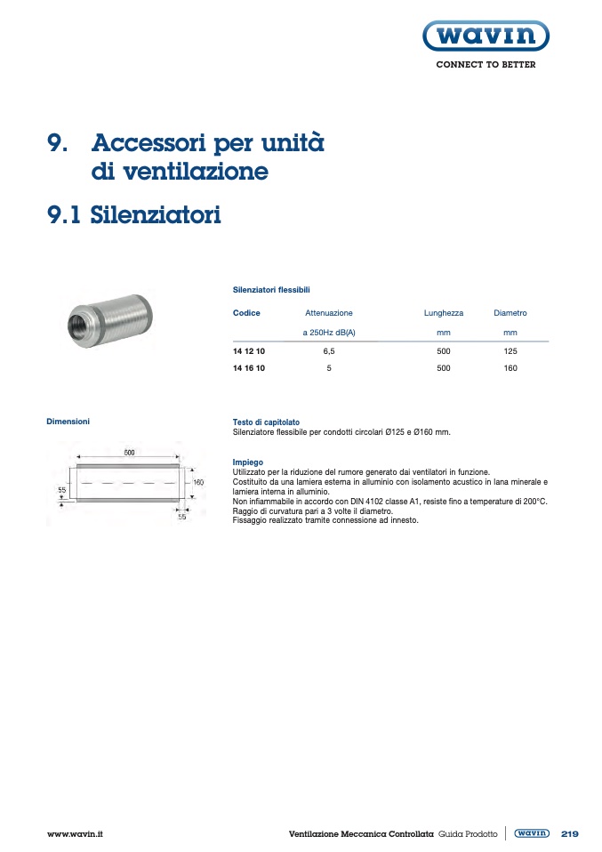 Silenziatore flessibile per condotti circolari Ø125 e Ø160 mm.