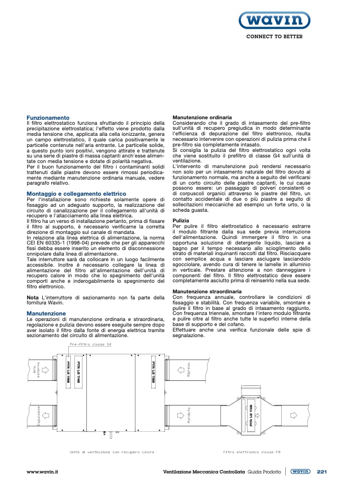 componenti del filtro. Il filtro elettrostatico deve essere