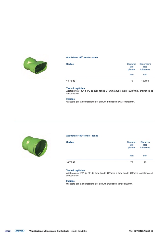 Utilizzato per la connessione del plenum a tubazioni ovali 102x50mm.