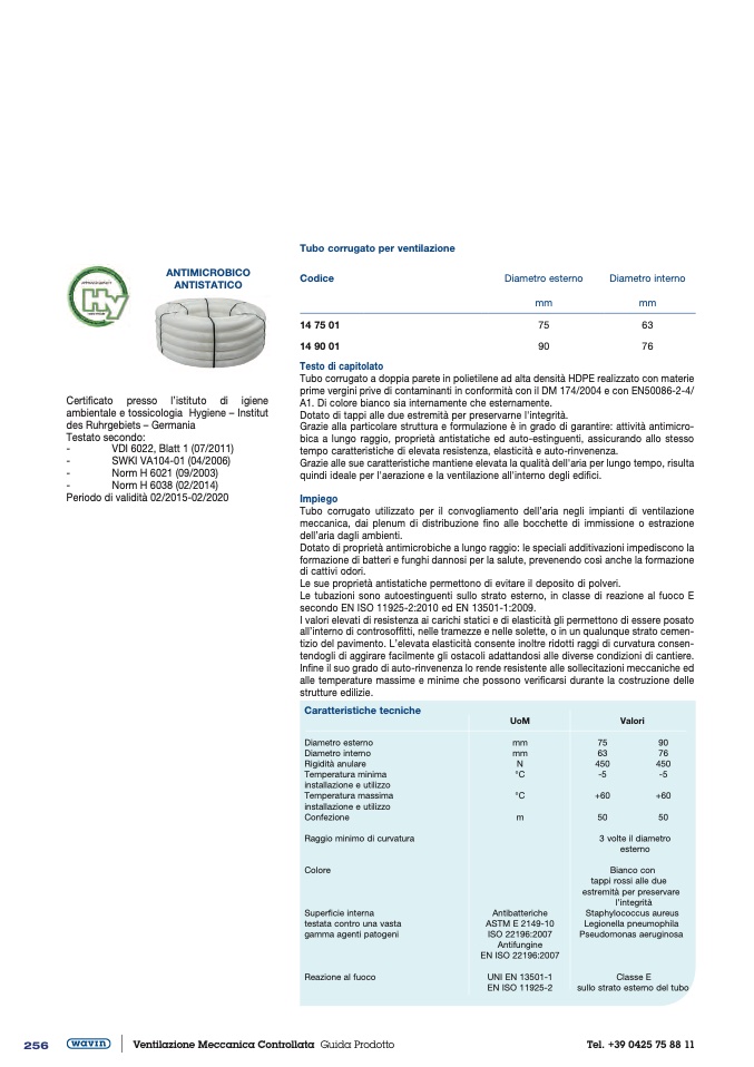 Le tubazioni sono autoestinguenti sullo strato esterno, in classe di reazione al fuoco E