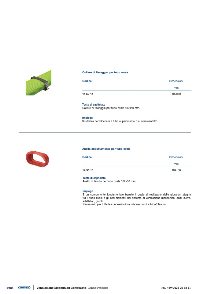 tra il tubo ovale e gli altri elementi del sistema di ventilazione meccanica, quali curve,