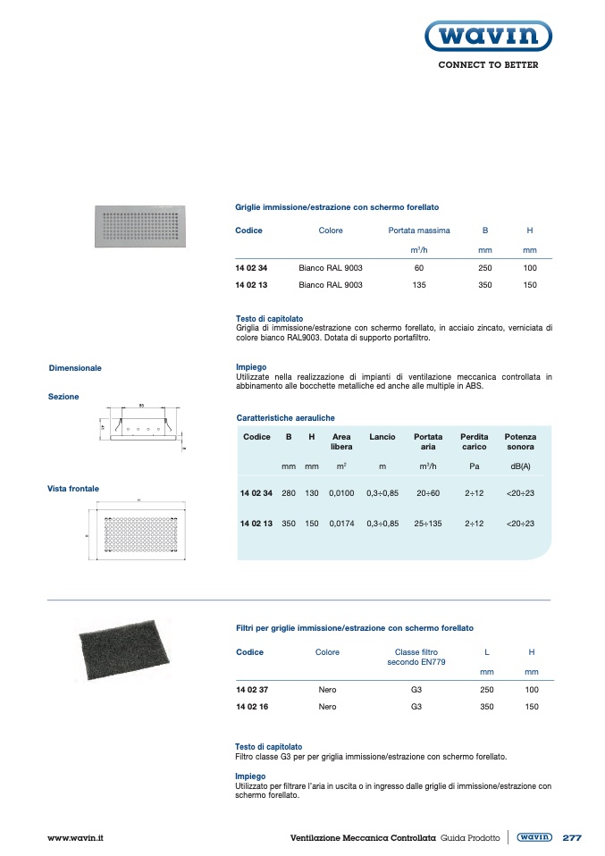 Utilizzato per filtrare l’aria in uscita o in ingresso dalle griglie di immissione/estrazione con