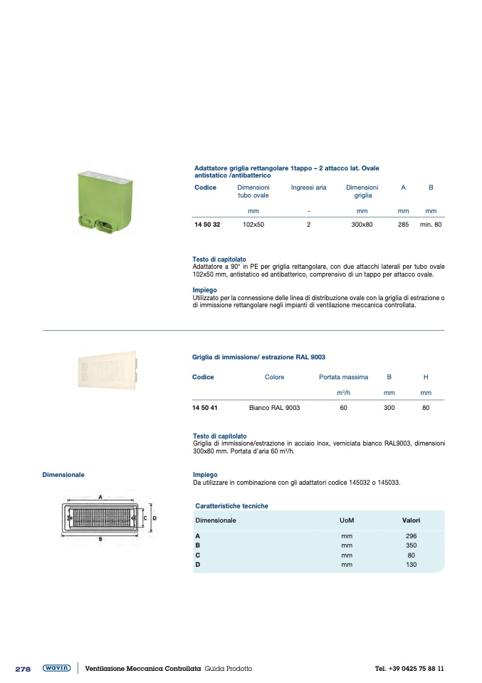 300x80 mm. Portata d'aria 60 m