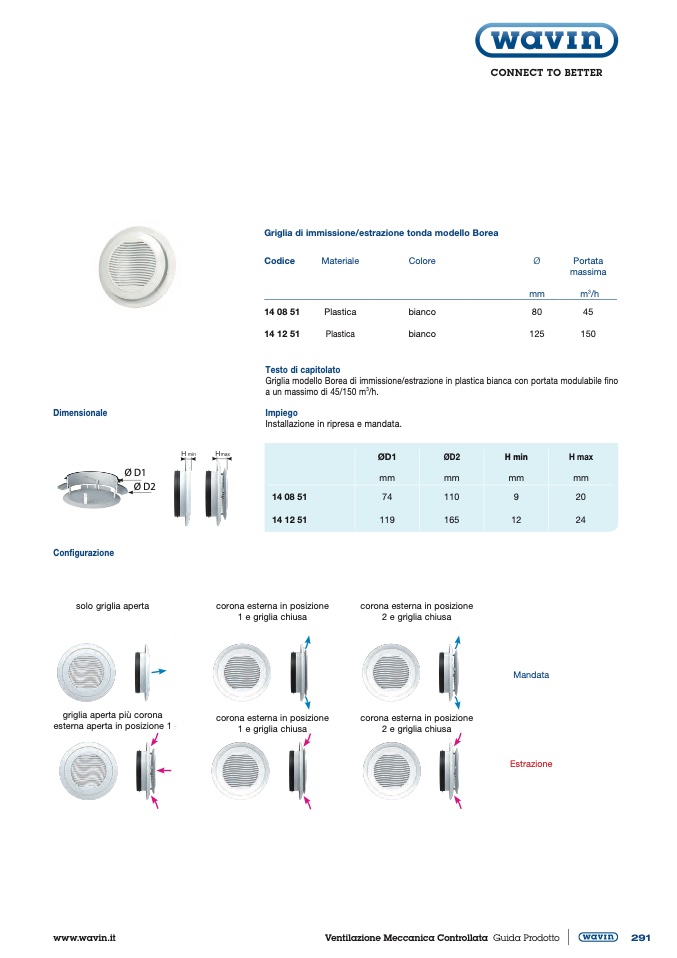 Griglia di immissione/estrazione tonda modello Borea