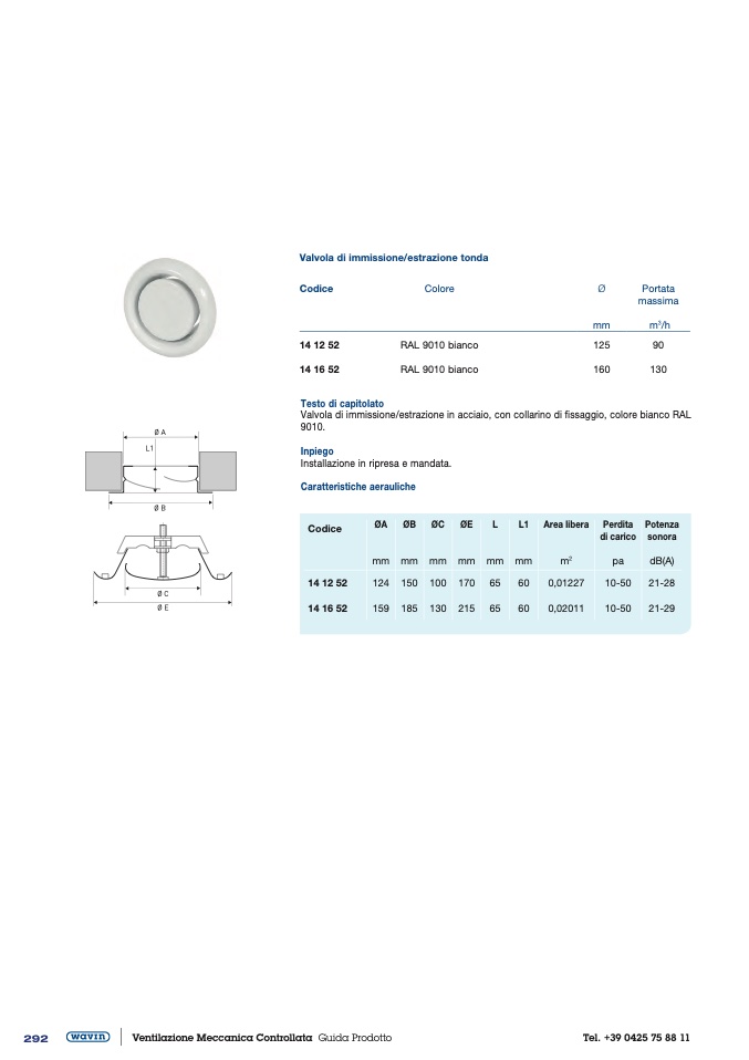 Valvola di immissione/estrazione tonda