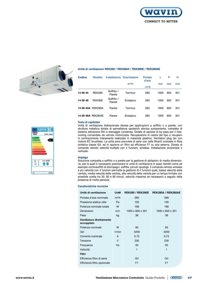 Unità di ventilazione REK280 / REK280A / REK280E / REK280AE
