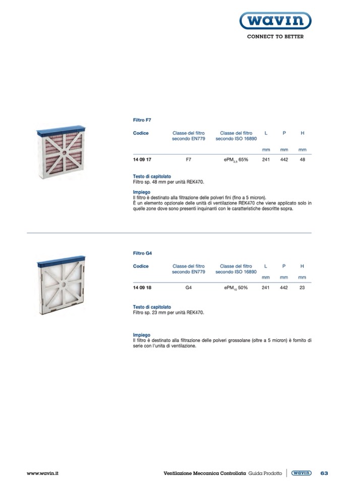 Filtro sp. 48 mm per unità REK470.
