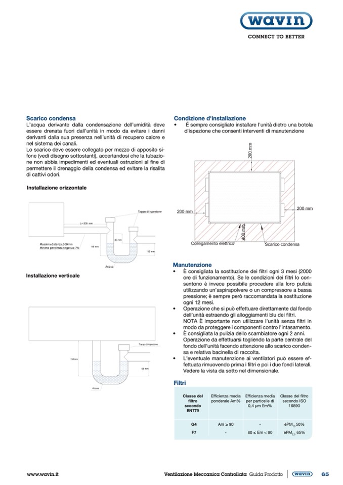 • È consigliata la sostituzione dei filtri ogni 3 mesi (2000