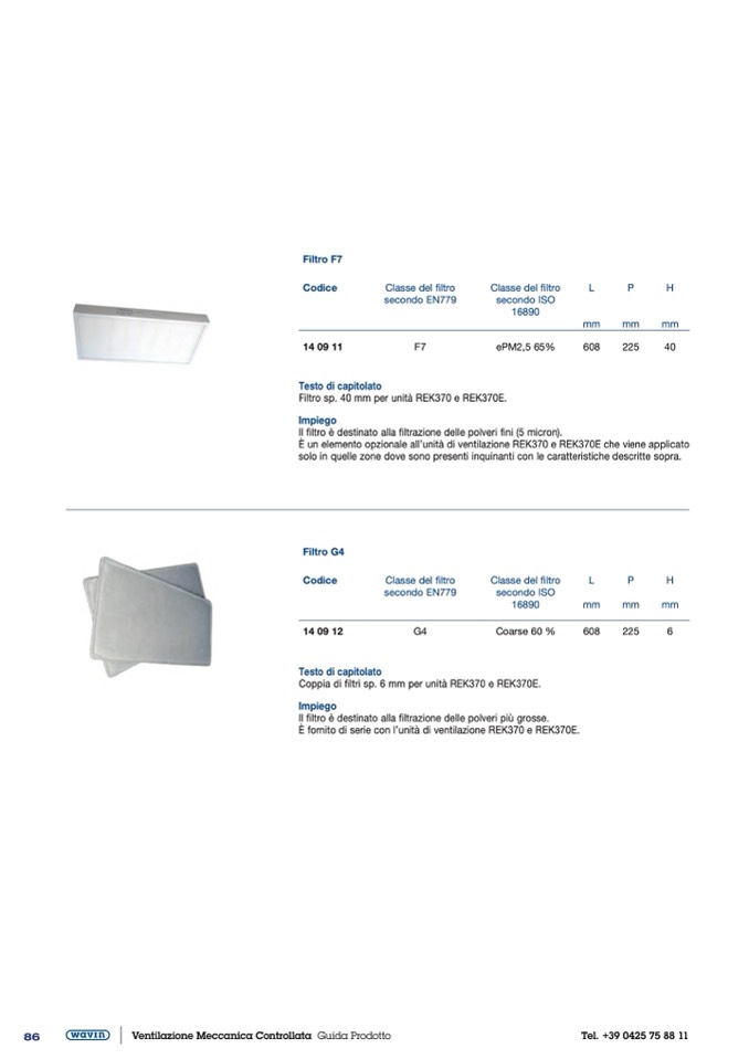 È fornito di serie con l’unità di ventilazione REK370 e REK370E.