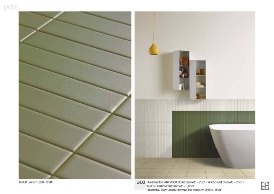 Rivestimento / Wall: A5000 Bone cm 5x20 - 2”x8” - A5050 Leaf cm 5x20 - 2”x8” -