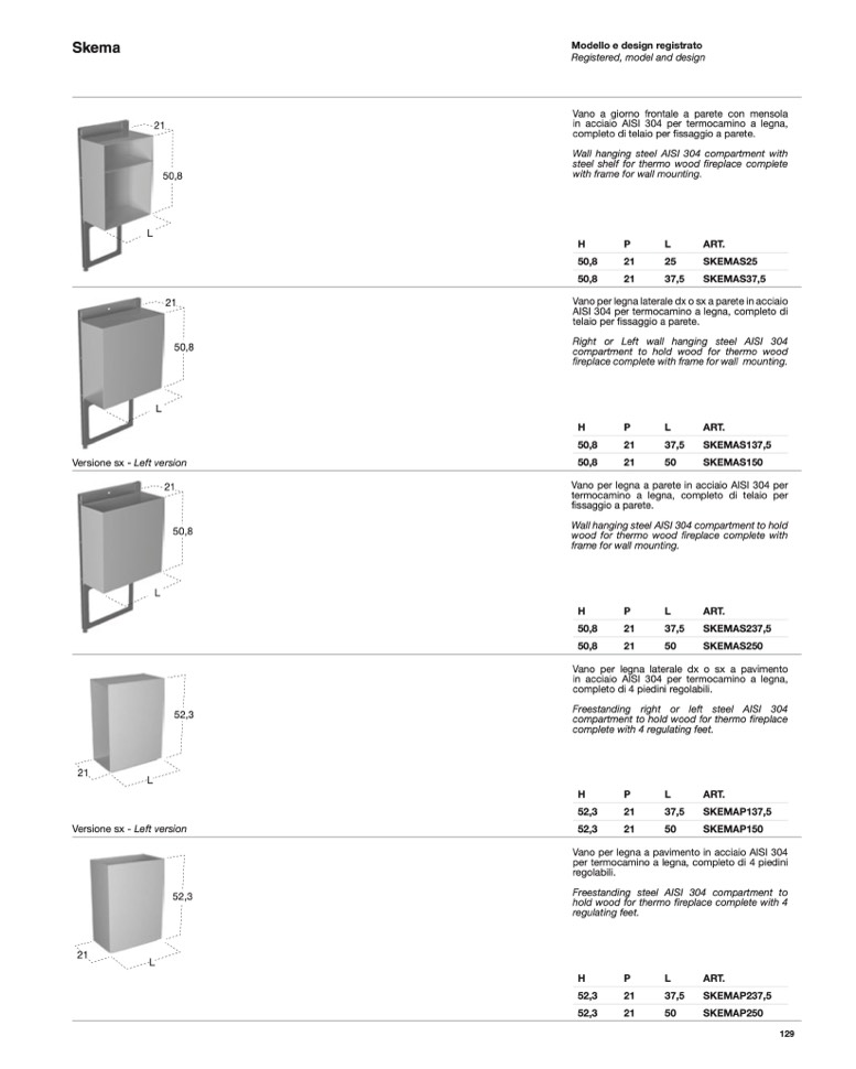 Vano per legna a pavimento in acciaio AISI 304