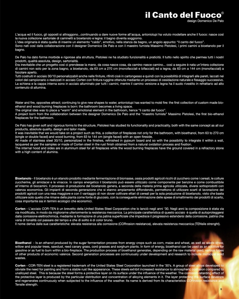 A project born from the collaboration between the designer Domenico De Palo and the “maestro fumista” Massimo Pistolesi, the first bio-ethanol