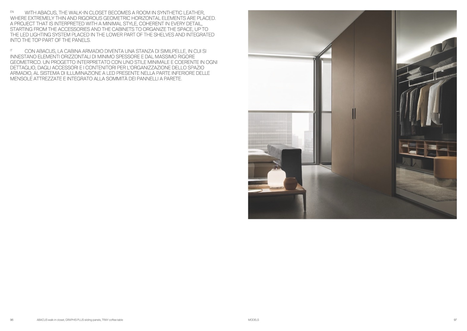 ABACUS walk-in closet, GRAPHIS PLUS sliding panels, TRAY coffee table