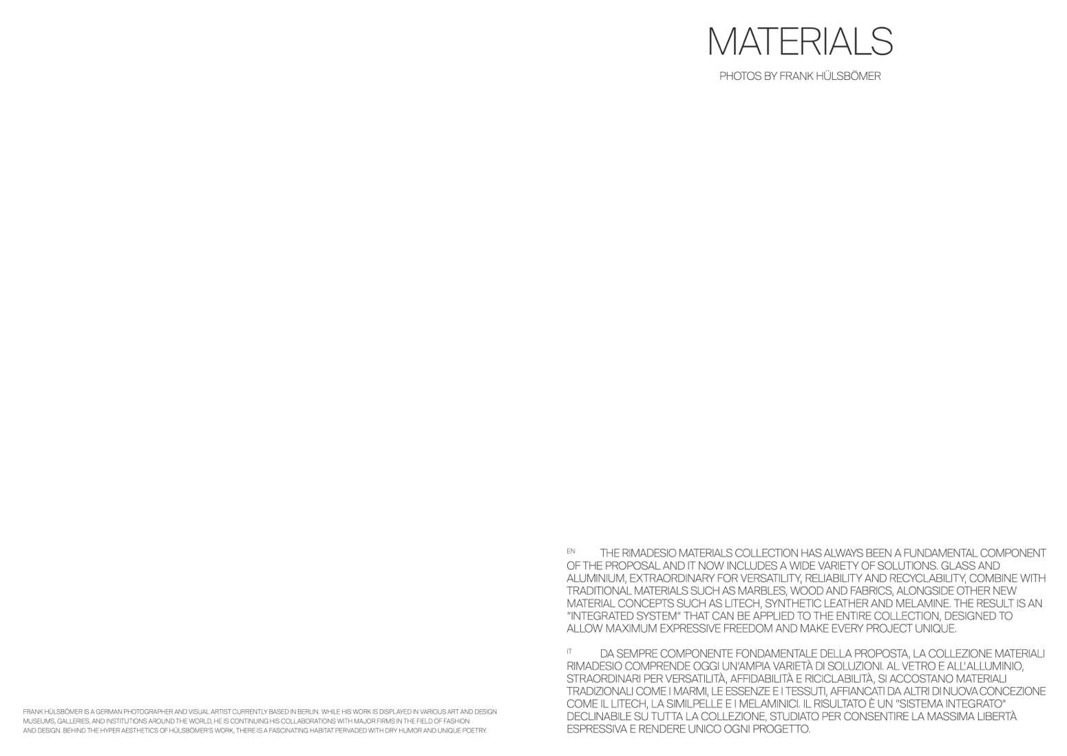 THE RIMADESIO MATERIALS COLLECTION HAS ALWAYS BEEN A FUNDAMENTAL COMPONENT