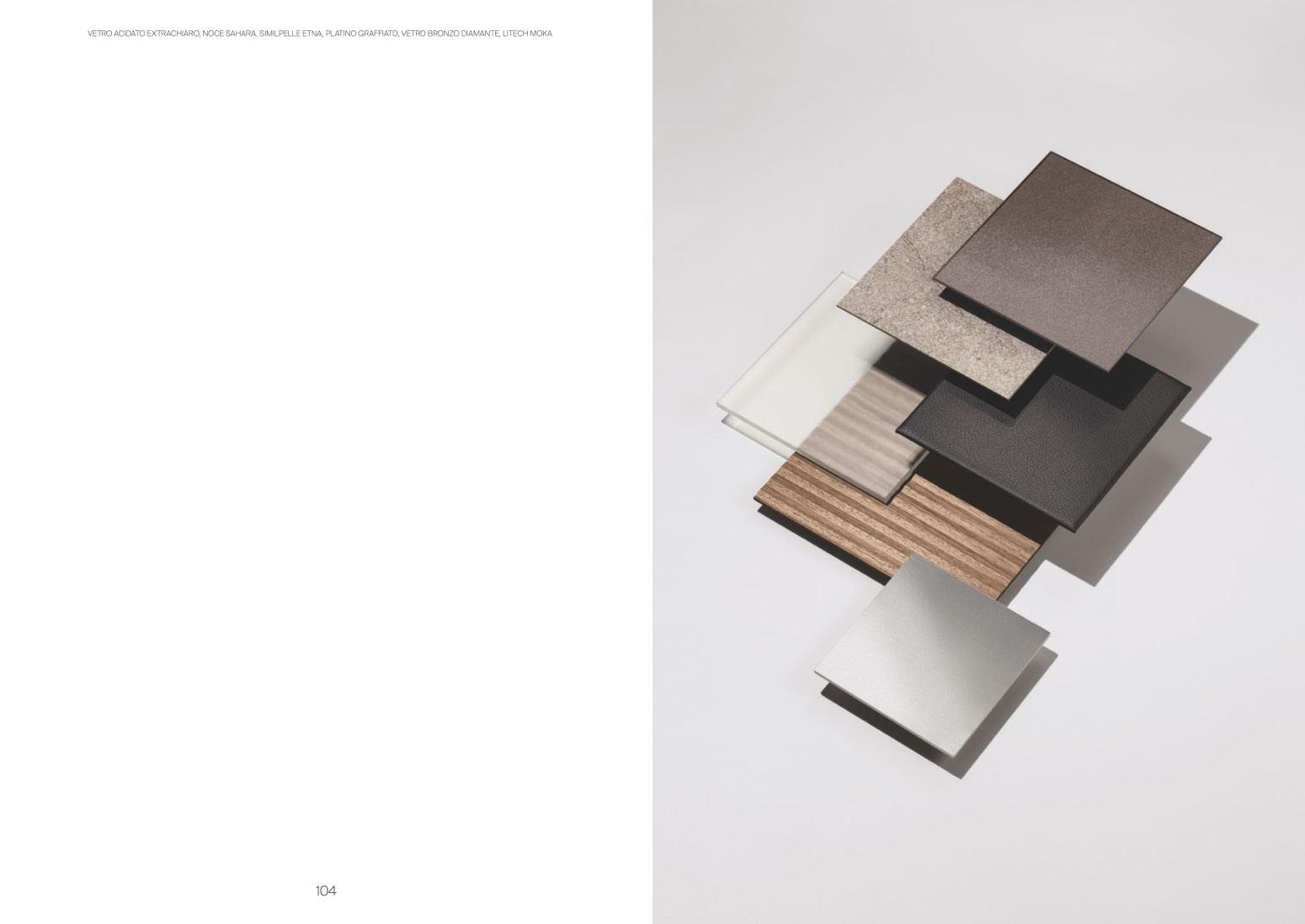 VETRO ACIDATO EXTRACHIARO, NOCE SAHARA, SIMILPELLE ETNA, PLATINO GRAFFIATO, VETRO BRONZO DIAMANTE, LITECH MOKA