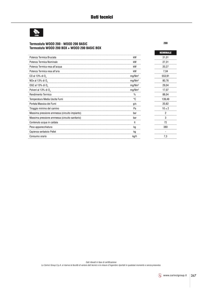 La Carinci Group S.p.A. si riserva la facoltà di variare dati tecnici e le misure d’ingombro riportati in qualsiasi momento e senza preavviso.