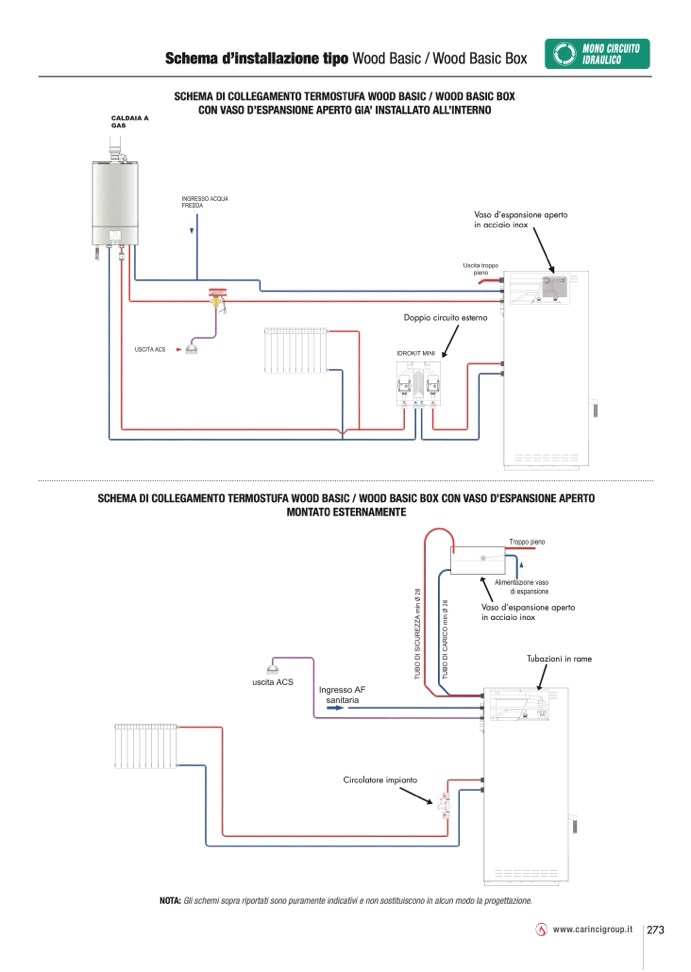 SCHEMA DI COLLEGAMENTO TERMOSTUFA WOOD BASIC / WOOD BASIC BOX CON VASO D’ESPANSIONE APERTO