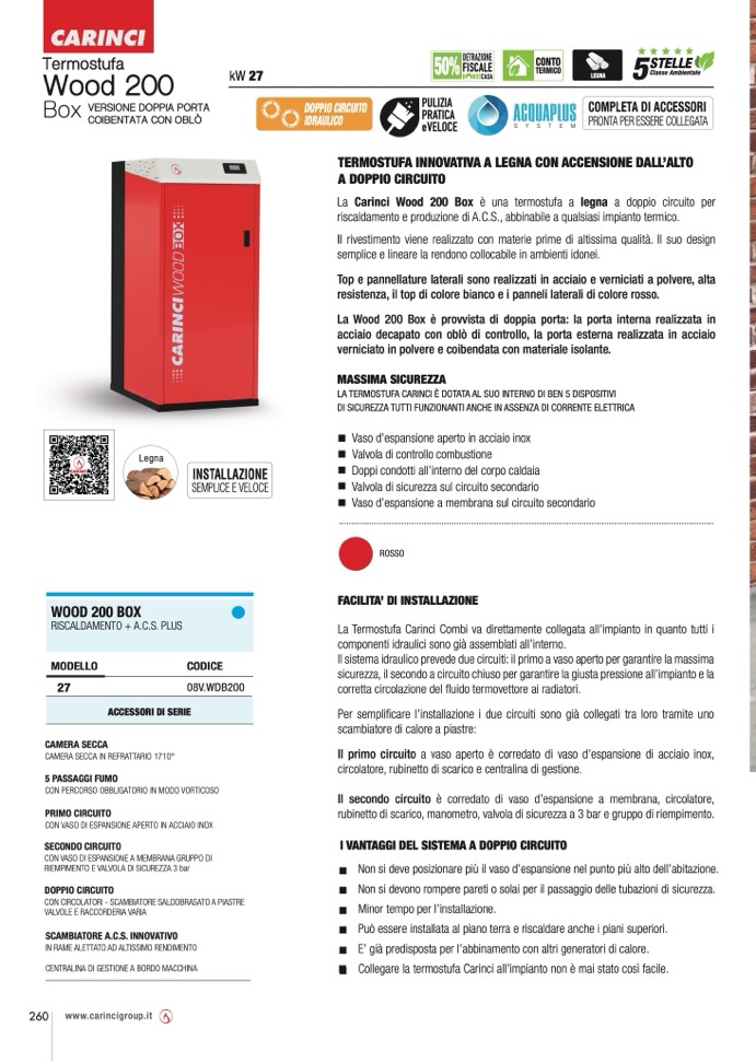 La Carinci Wood 200 Box è una termostufa a legna a doppio circuito per