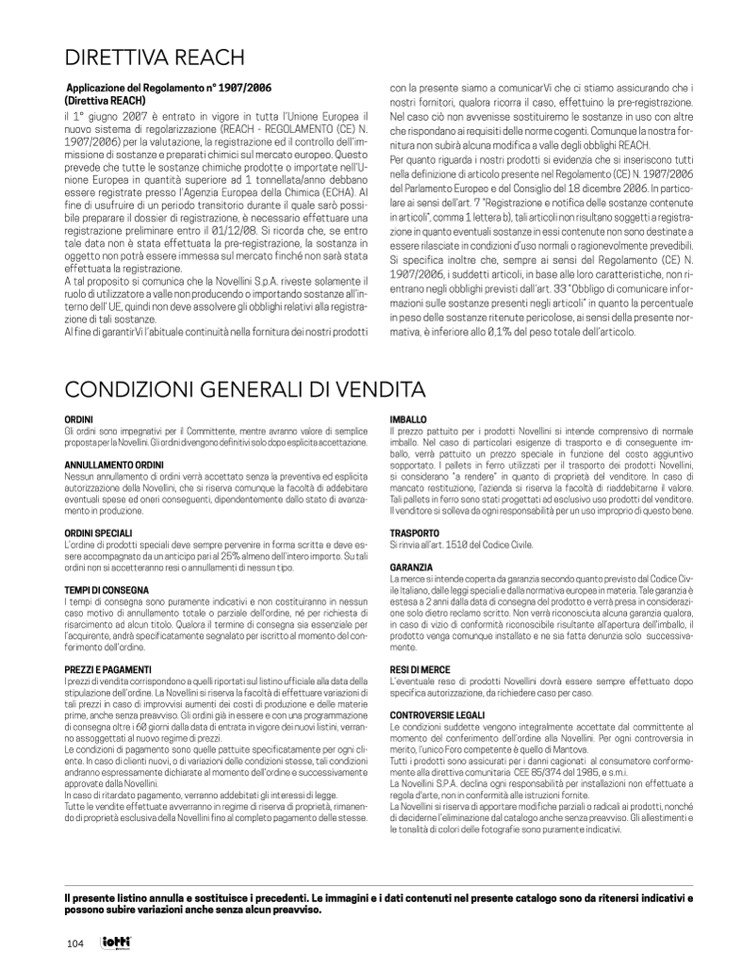 La Novellini si riserva di apportare modifiche parziali o radicali ai prodotti, nonché