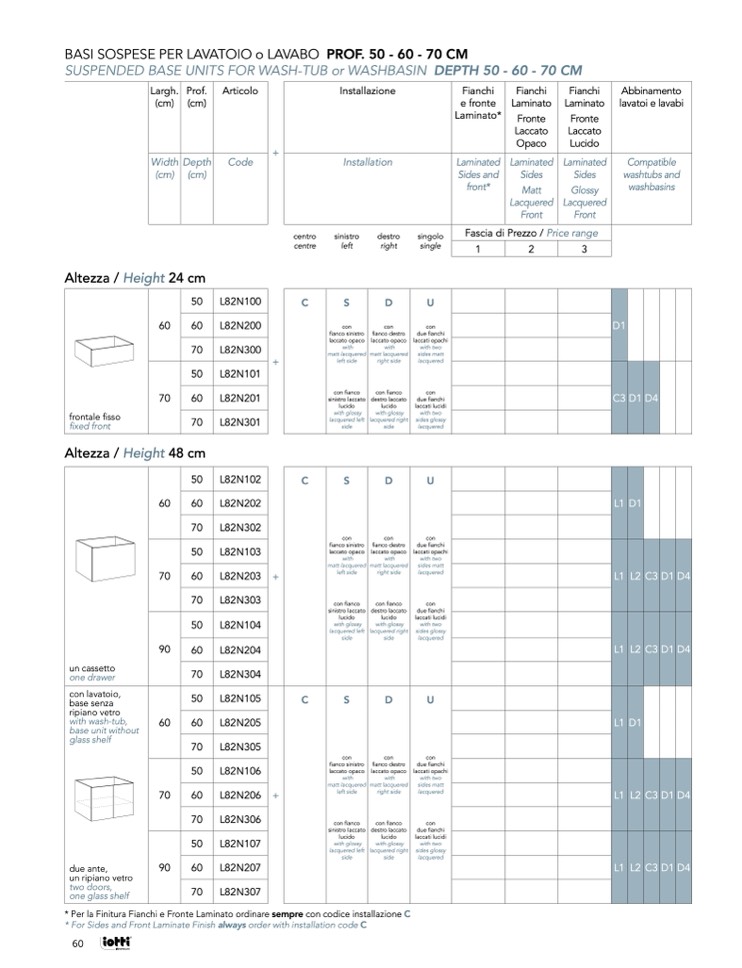 * Per la Finitura Fianchi e Fronte Laminato ordinare sempre con codice installazione C