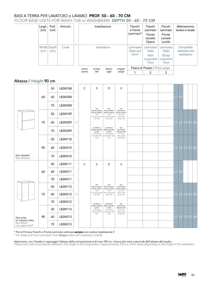 * Per la Finitura Fianchi e Fronte Laminato ordinare sempre con codice installazione C