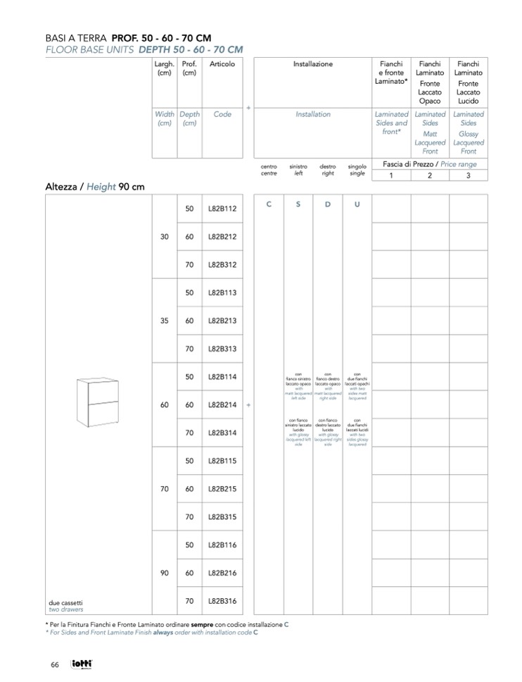* Per la Finitura Fianchi e Fronte Laminato ordinare sempre con codice installazione C