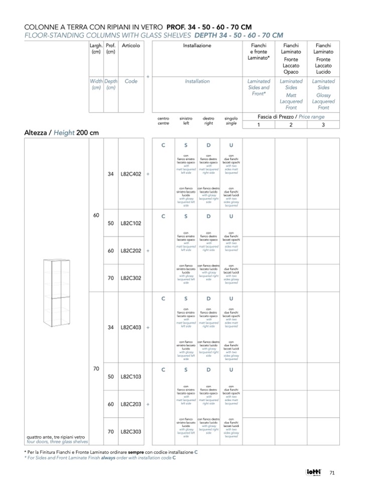 * Per la Finitura Fianchi e Fronte Laminato ordinare sempre con codice installazione C